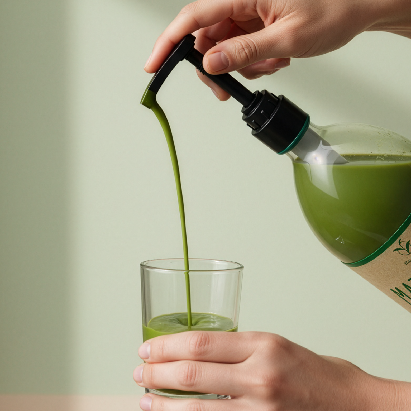 - Ein Liter Matchary = 50 Portionen, bei der empfohlenen Dosierung von 2 Pumps (20ml).
